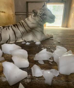 暑氣襲來(lái)時(shí),赭山動(dòng)物園的毛孩子們收到了 “降溫大禮”!虎山的老虎們愜意地趴在冰塊邊,爪子時(shí)不時(shí)撥弄冰晶,琥珀色的眼睛瞇成舒服的弧線(xiàn);棕熊更逗,抱著(zhù)冰塊打滾時(shí)發(fā)出呼嚕聲,圓滾滾的身子把冰壓得 “咔嚓” 響。飼養員們還在水池里投放碎冰,水珠濺起的涼意讓猛獸們紛紛展露萌態(tài),這場(chǎng)充滿(mǎn)童趣的物理降溫,正把夏日燥熱釀成毛茸茸的快樂(lè )。