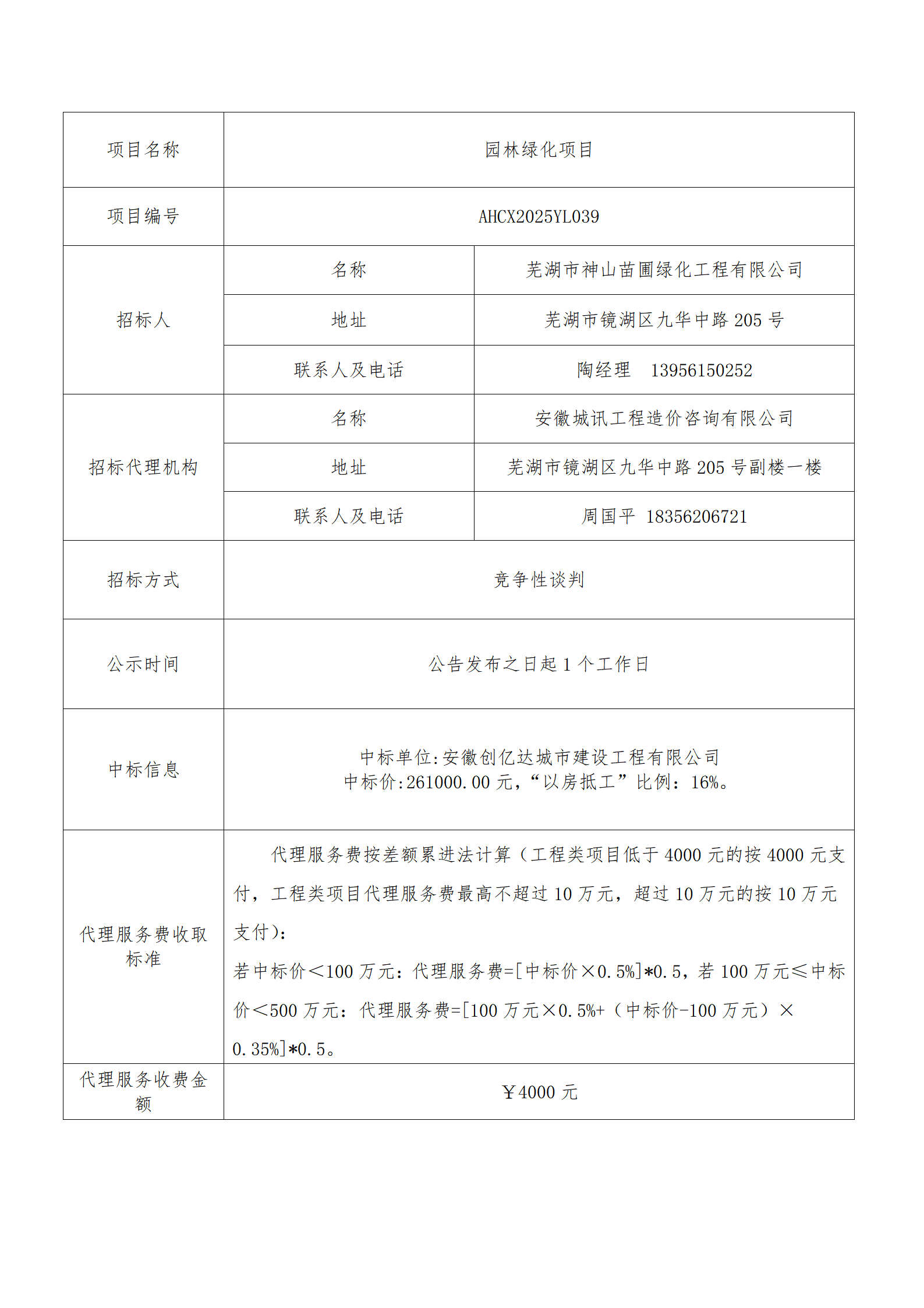 園林綠化項目成交結果公告