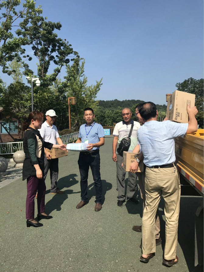 7月24日上午,蕪湖城市園林集團有限公司領(lǐng)導帶領(lǐng)集團工會(huì )和相關(guān)部門(mén)負責人分別對集團各子公司始終奮戰在抗旱保苗一線(xiàn)的綠化養護工人進(jìn)行慰問(wèn),給在高溫下仍然堅守崗位的一線(xiàn)工人們送去了毛巾、肥皂、洗發(fā)露等勞保用品以及風(fēng)油精、藿香正氣水等防暑降溫物品。