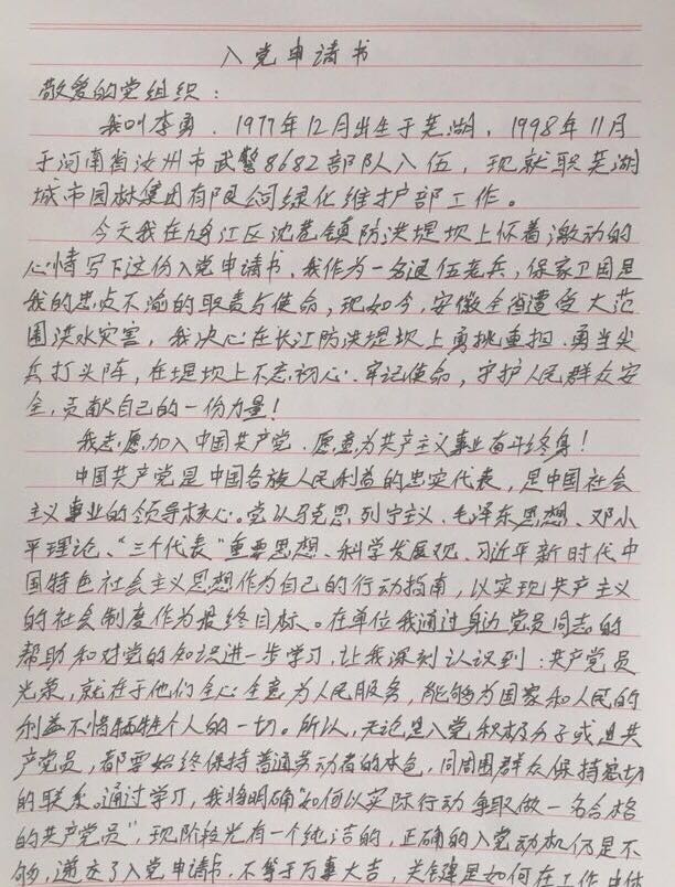 三、防汛大堤上的入黨申請書(shū)