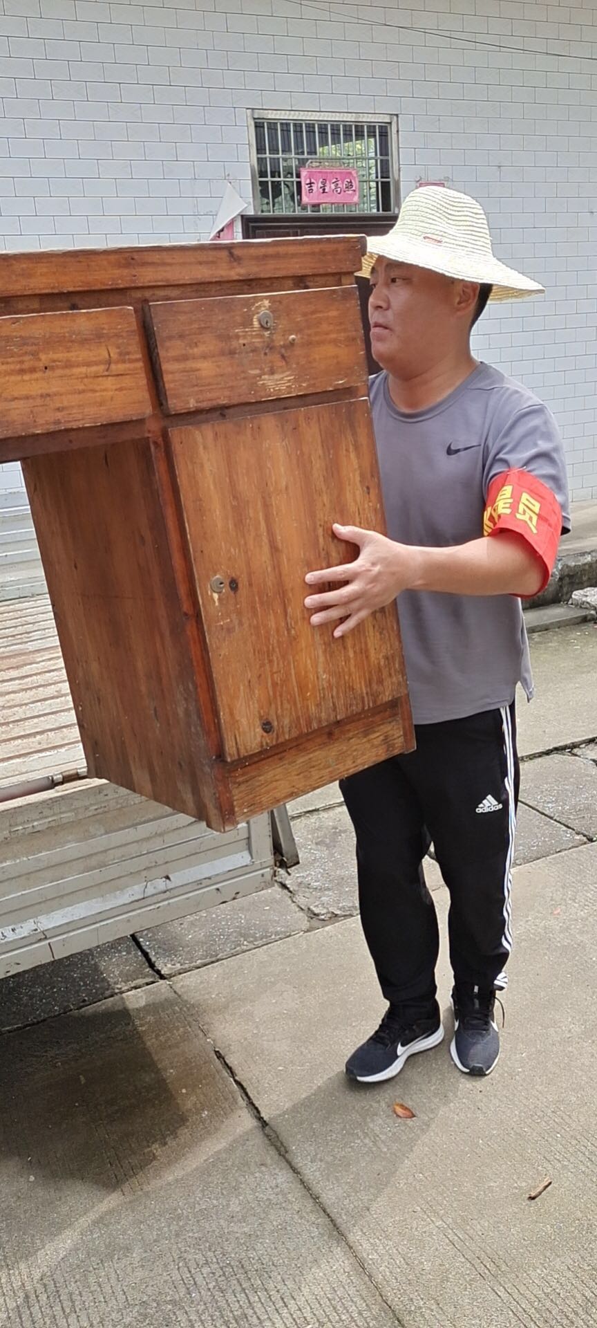 7月29日下午,在完成巡堤查險任務(wù)后,接到當地政府求助,需要人員幫助受困群眾搬運家具,撤離隱患地區,隊員李勇不顧疲勞、主動(dòng)請纓,妥善完成工作任務(wù)。