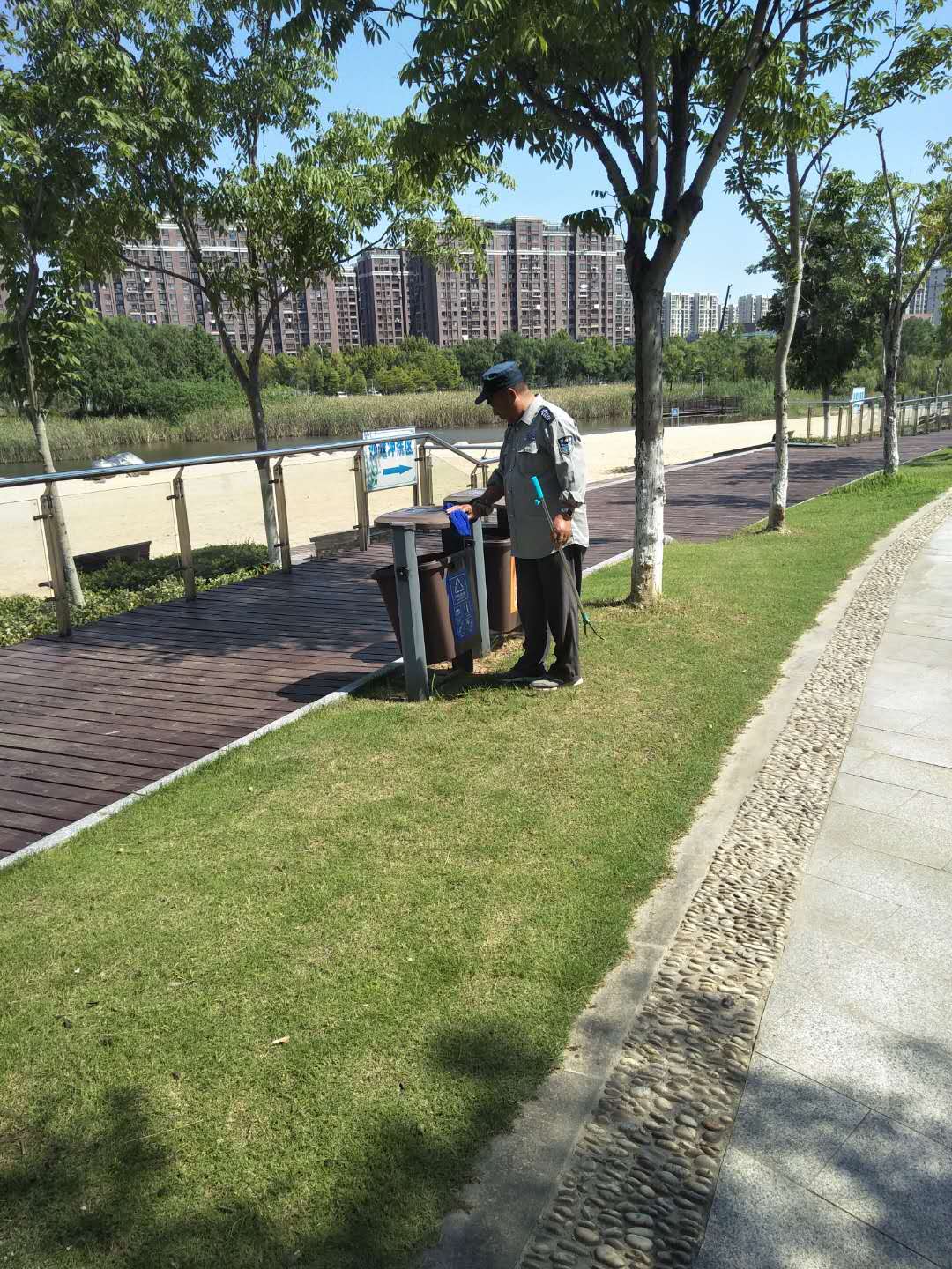 保潔人員將本職工作范圍內的公廁、路面及亭臺座椅等清掃干凈,不留死角,保證干凈整潔無(wú)污染無(wú)異味;雜物統一歸放、損壞設施及時(shí)報修、警示標牌等保持清潔;園區各處死角及垃圾桶每日清理。保安人員均按要求統一著(zhù)裝上崗,穿戴整齊,對待游客使用文明用語(yǔ);同時(shí),也加強了園區內的治安巡邏,對游客攀爬雕塑、攀折樹(shù)枝、寵物入園、水域嬉戲等不文明不安全的行為進(jìn)行勸導和制止。