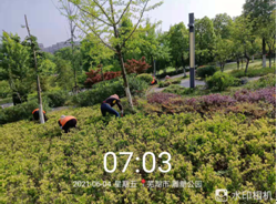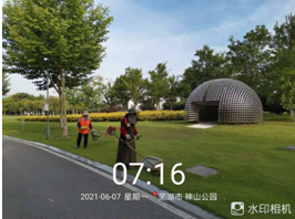 為了在黨的100歲生日之際向游客展現神山公園最美的一面,我們對公園內的綠化工作做了更高的要求,除每日日常綠化維護外,我們還加班加點(diǎn)對綠化進(jìn)行了進(jìn)一步提升,更加細致地修剪養護草坪、模紋,對水域內的水草、浮萍做定時(shí)清理,做好水質(zhì)管控。