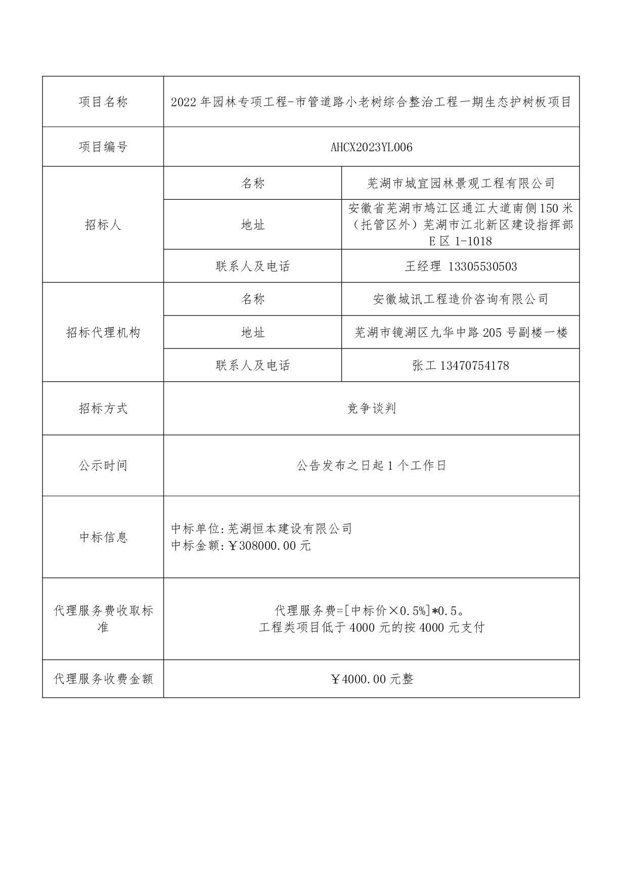 2022年園林專(zhuān)項工程-市管道路小老樹(shù)綜合整治工程一期生態(tài)護樹(shù)板項目中標...