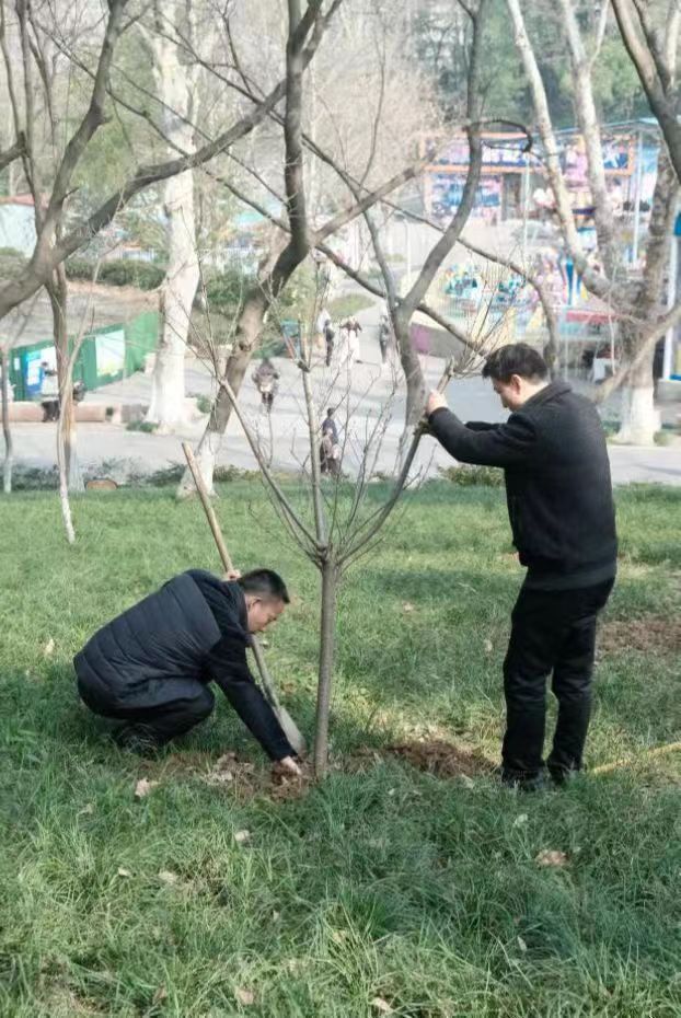 在調研期間,調研小組一行參加了公園植樹(shù)活動(dòng),各位同志分工協(xié)作,扶直苗木,揮鍬鏟土,用實(shí)際行動(dòng)踐行“綠水青山就是金山銀山”的生態(tài)發(fā)展理念,為生態(tài)建設增綠添彩。