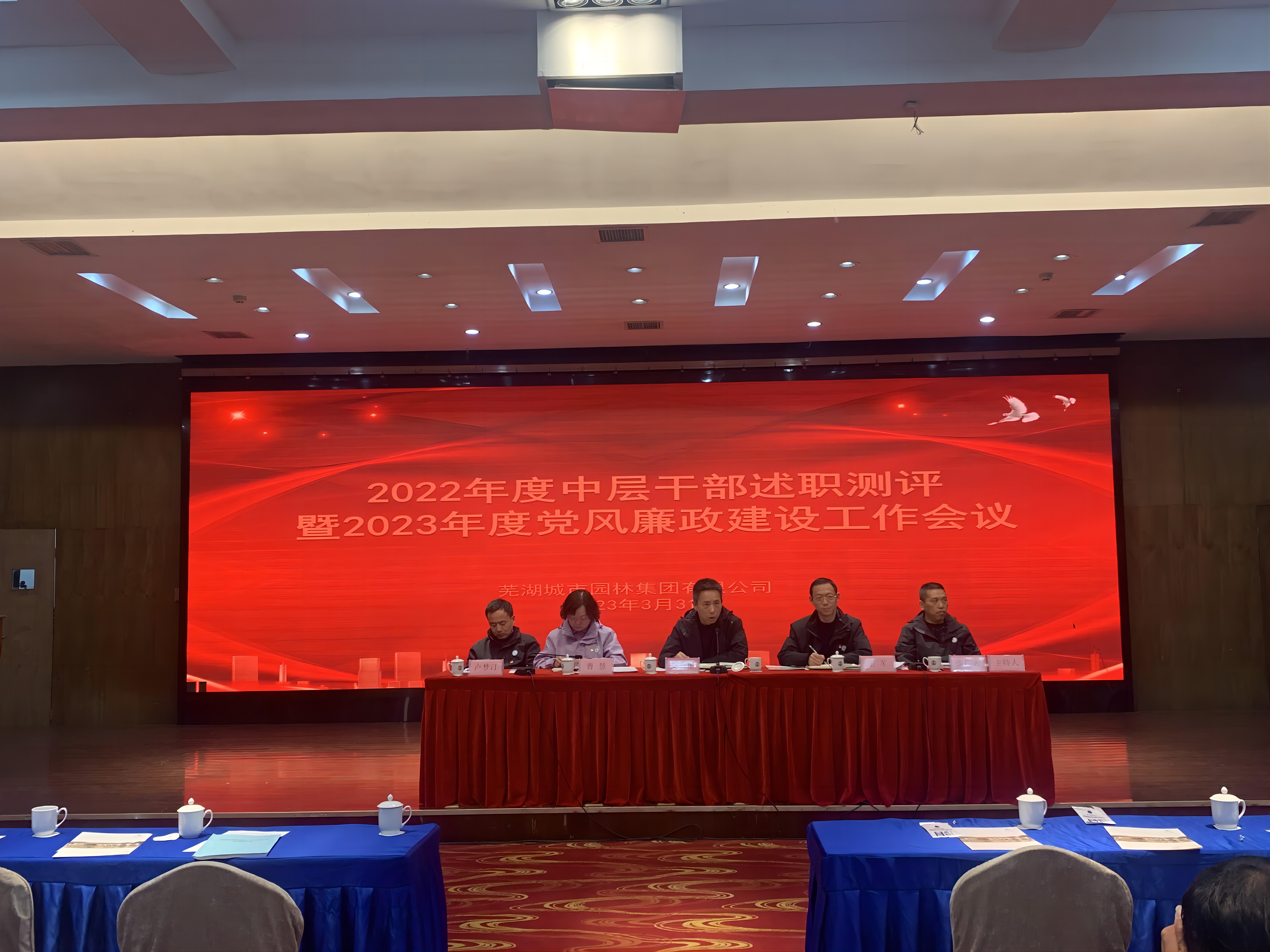 3月31日下午,蕪湖城市園林集團召開(kāi)2022年中層干部述職測評暨2023年度黨風(fēng)廉政建設工作會(huì )議。集團領(lǐng)導班子、中層干部、全體黨員、班組長(cháng)、機關(guān)全體職員參會(huì )。
