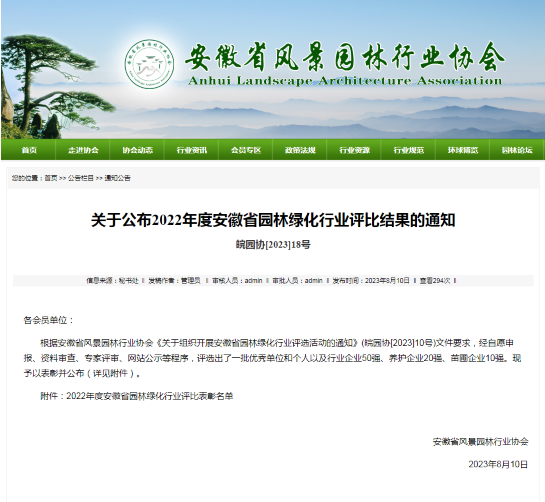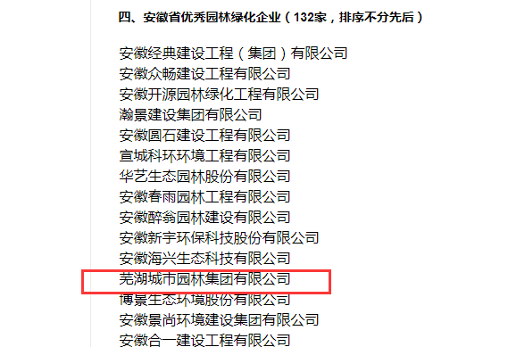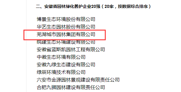 2023年8月10日,經(jīng)過(guò)自愿申報、材料初審、專(zhuān)家評審、信用篩查等程序,安徽省風(fēng)景園林行業(yè)協(xié)會(huì )開(kāi)展的安徽省園林綠化行業(yè)評比結果出爐,蕪湖城市園林集團憑借強勁的綜合實(shí)力脫穎而出,分別榮獲2023年安徽省園林綠化養護企業(yè)20強(第3名),2023年安徽省園林綠化企業(yè)50強(第20名),2023年安徽省優(yōu)秀園林綠化企業(yè)和2023年安徽省優(yōu)秀養護企業(yè)四項企業(yè)榮譽(yù)。與此同時(shí),集團夏登彬同志榮獲2023年安徽省優(yōu)秀企業(yè)經(jīng)理,王義強同志榮獲2023年安徽省優(yōu)秀項目經(jīng)理,陶俊、汪苑竹同志榮獲2023年安徽省優(yōu)秀工程師。