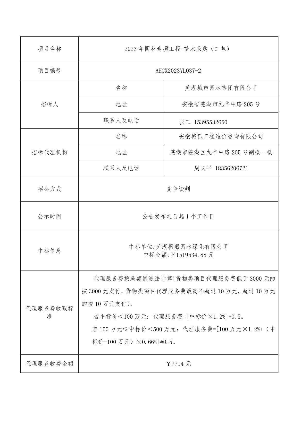 2023年園林專(zhuān)項工程-苗木采購(二包)中標結果公示