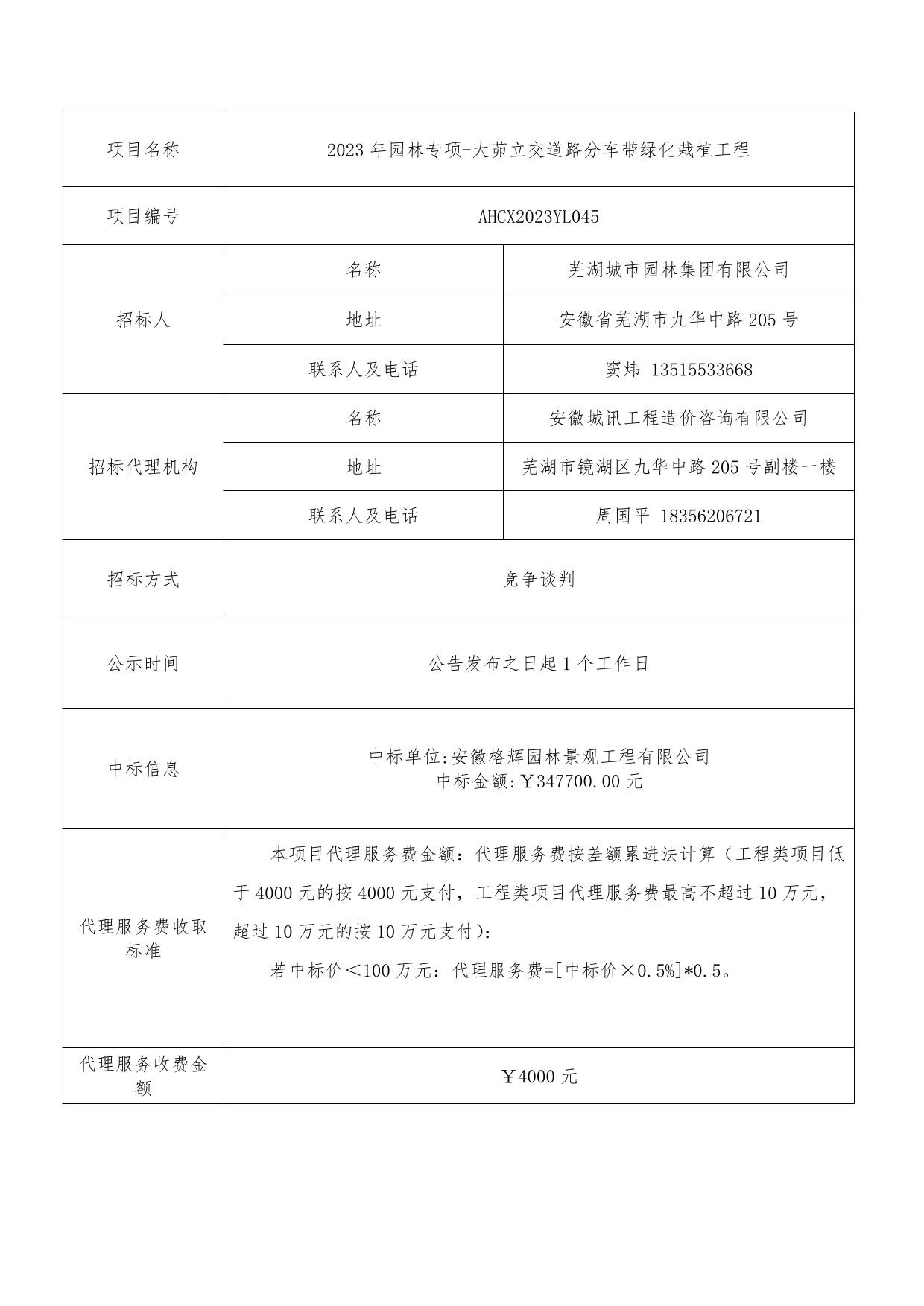 2023年園林專(zhuān)項-大茆立交道路分車(chē)帶綠化栽植工程中標結果公示
