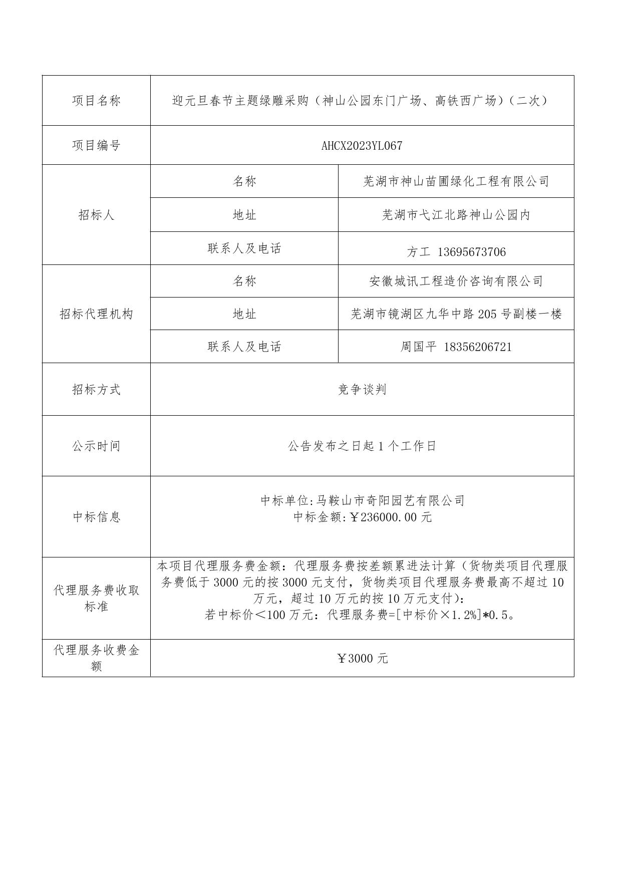 迎元旦春節主題綠雕采購(神山公園東門(mén)廣場(chǎng)、高鐵西廣場(chǎng))(二次)成交結果公...