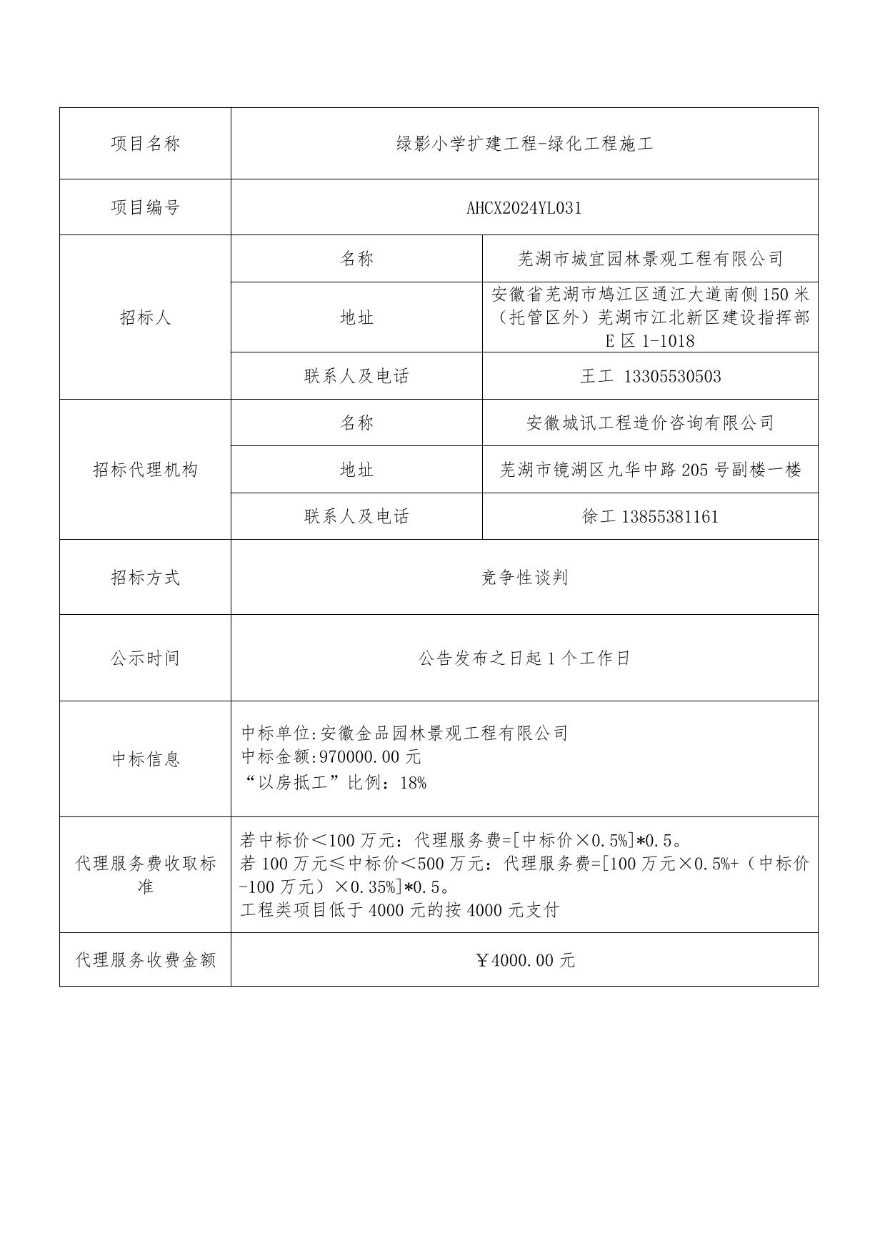 綠影小學(xué)擴建工程-綠化工程施工成交結果公告