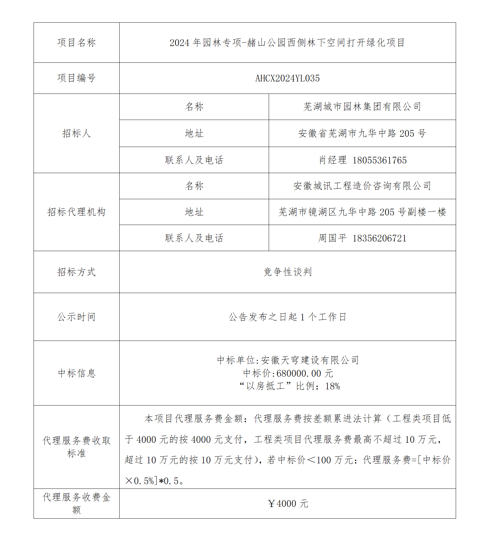 2024年園林專(zhuān)項-赭山公園西側林下空間打開(kāi)綠化項目成交結果公告