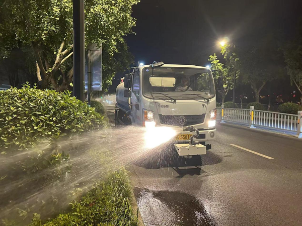 統籌規劃,科學(xué)澆水,合理安排時(shí)間和人力。在高溫天氣下,給綠植澆水頗有“門(mén)道”。首先,澆水時(shí)間必須避開(kāi)中午高溫時(shí)段,以免灼傷綠植。鑒于植物生長(cháng)特性,若在高溫時(shí)段澆水,水分在葉片上會(huì )迅速蒸發(fā)并形成高溫蒸汽,這既容易對葉片造成燙傷,又容易讓植物根系受損。為此,園林集團每日精心制定實(shí)時(shí)抗旱計劃,采用“兩頭做、中間休”的工作模式,每天最早凌晨三點(diǎn)上路作業(yè),上午十點(diǎn)至下午五點(diǎn)暫停作業(yè),晚上六點(diǎn)至午夜繼續安排抗旱澆水,落實(shí)錯峰澆灌,在早晚時(shí)段加班加點(diǎn)澆水作業(yè)。其次,采取緩慢澆灌、多次澆灌的方式,提升苗木土壤的含水量,增強其抗旱能力,確保做到細澆慢灌、澆足澆透,全面覆蓋,不留任何死角。另外,重點(diǎn)呵護不耐旱苗木、脫水嚴重苗木、當年新栽苗木,并在晚間對不耐旱的喬灌木采用滴灌的方式進(jìn)行深度補水。