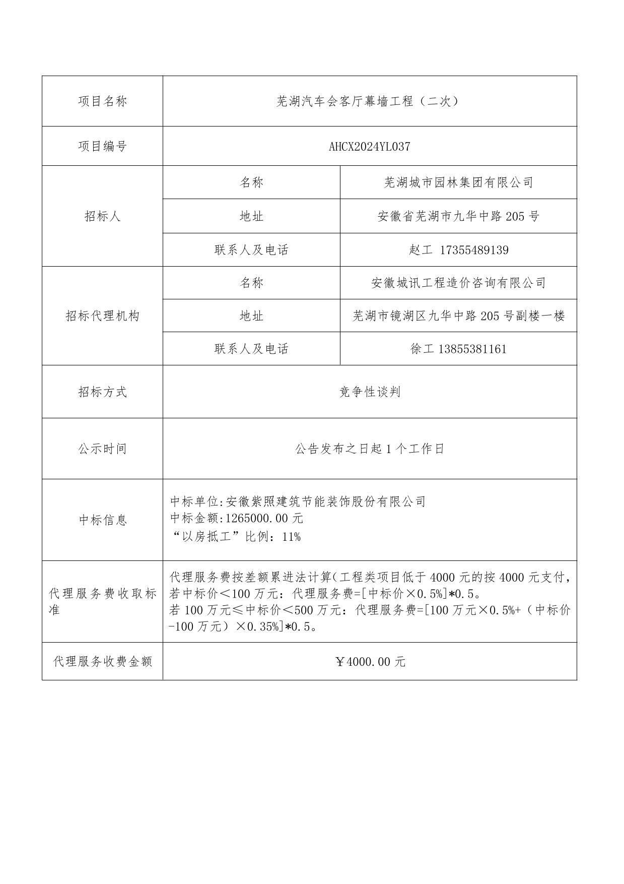 蕪湖汽車(chē)會(huì )客廳幕墻工程(二次)中標結果公告