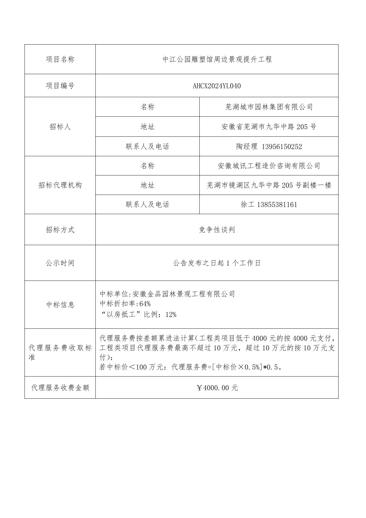 中江公園雕塑館周邊景觀(guān)提升工程成交結果公告